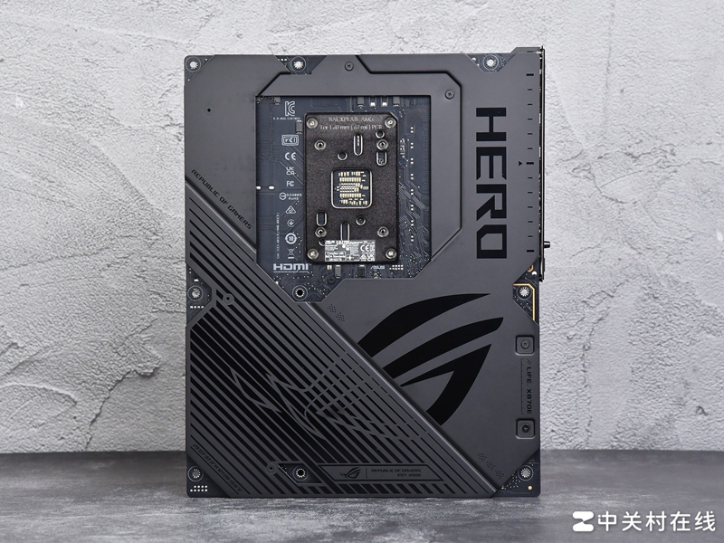 华硕 X870E HERO主板这代散热模组更加豪华了,背面都采用了全覆盖式金属装甲,及抗压又能带来不错的导热效果。