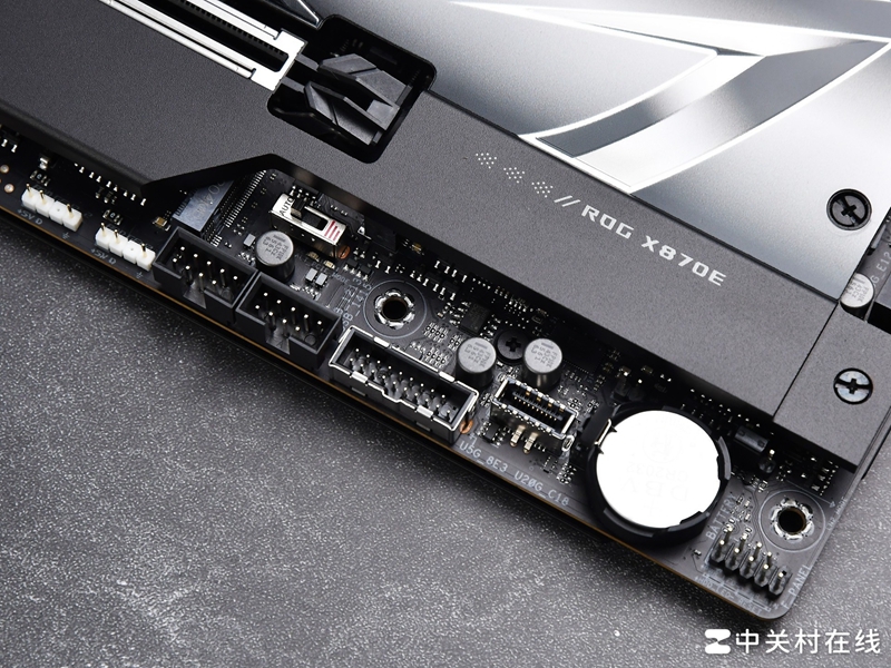 华硕 X870E HERO主板供电旁额外提供一个单8pin供电接口,这是给旁边的USB 3.2 Gen2x2 TYPE-C前置接口提供60W快充,如果不接入,也能快充,不过功率只有27W。