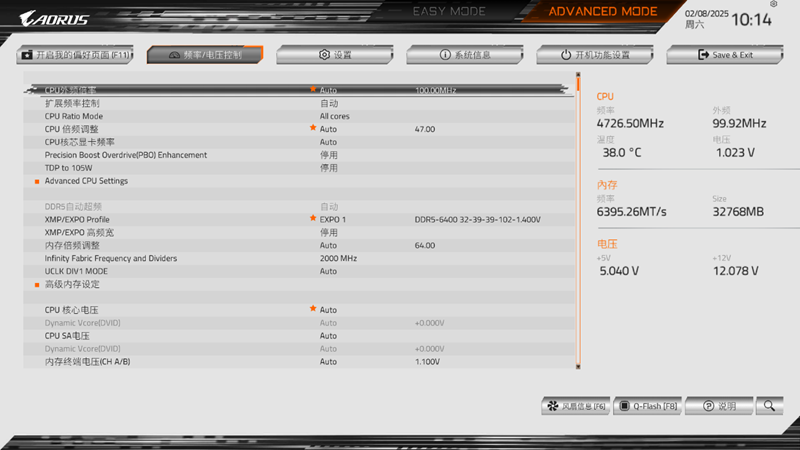 高级模式则提供了更加丰富的功能,包括频率/电压控制,设置,系统信息,开机功能设置等,玩家经常用的超频等功能都在这里设置,各项细节参数也在高级模式中可以调节。
