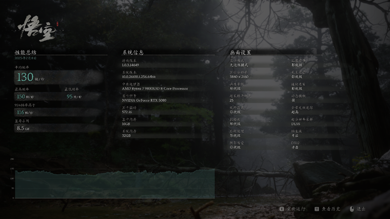 在《黑神话:悟空》的帧数测试软件中,设置4K分辨率,影视级画质,这套平台拿下了130帧的成绩,很好地发挥出了全套硬件的性能。
