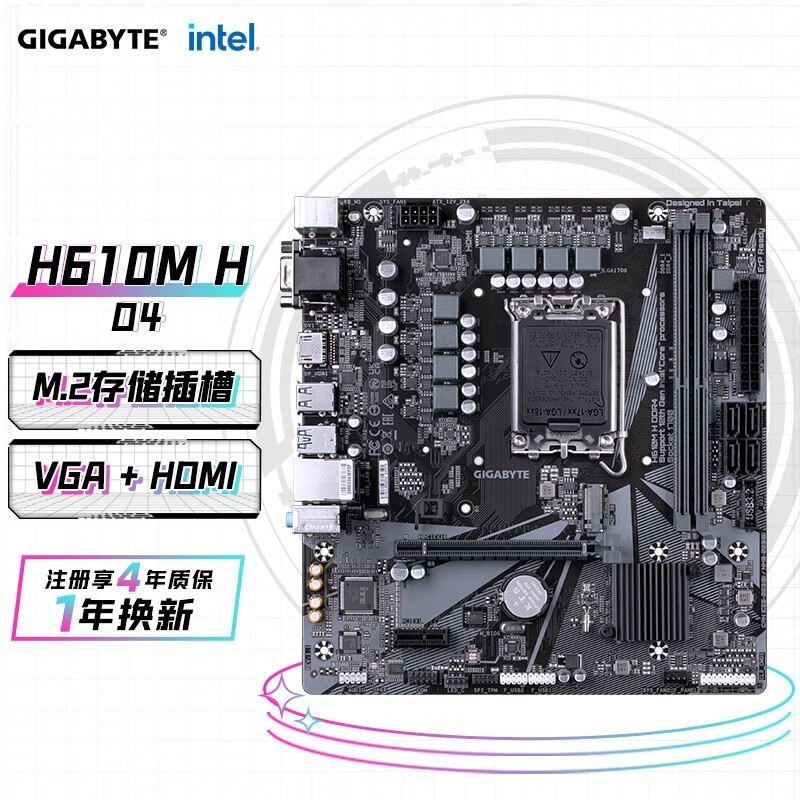 技嘉 H610M H DDR4主板支持CPU12代酷睿12400F Intel H610 LGA 1700
