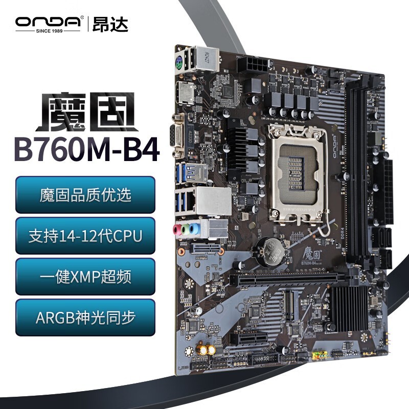 昂达 B760M-B4(Intel B760 /LGA 1700)支持DDR4 CPU12600K/14400F/13490F 游戏娱乐主板
