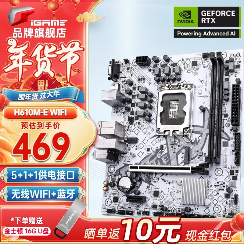 七彩虹 H610M-E游戏主板现正参与满399立减100的促销活动!如果你正在寻找一款高性能、安全可靠的主板,那么这款主板绝对是你的不二之选。喜欢的亲们们不要错过这个机会!