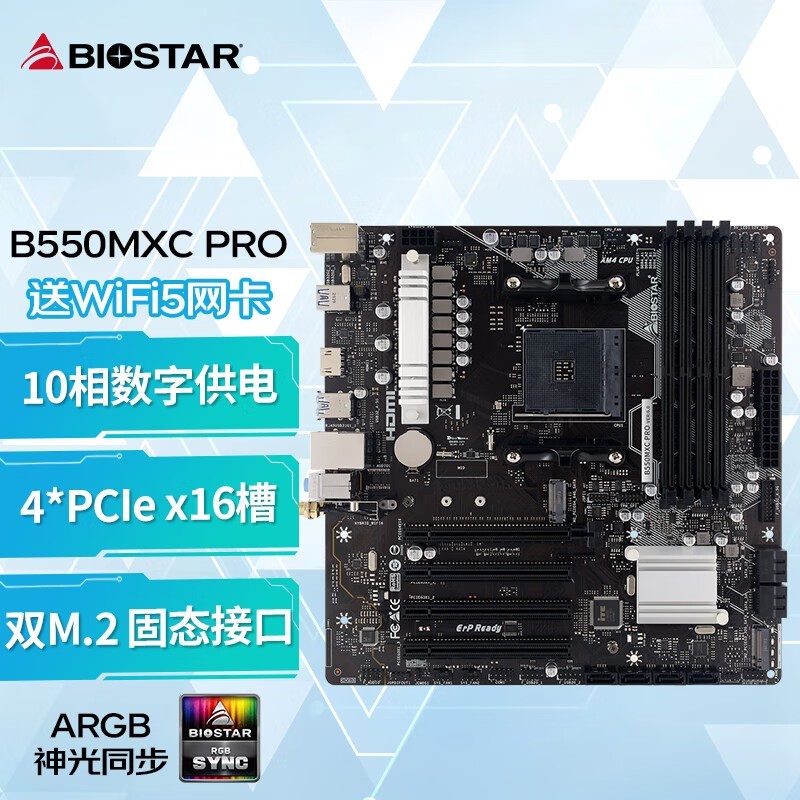 映泰 B550MXC PRO主板含WiFi5网卡支持CPU5600X/5800X/5600G (AMD B550/Socket AM4)