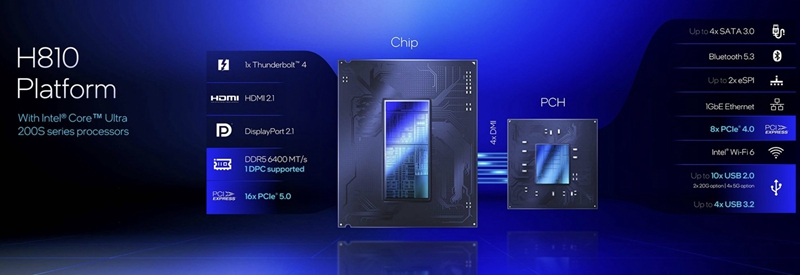 除了微星 B860M外,这次英特尔也同样发布了H810芯片组,不过定位比B860更低,属于初学入门阶段产品。