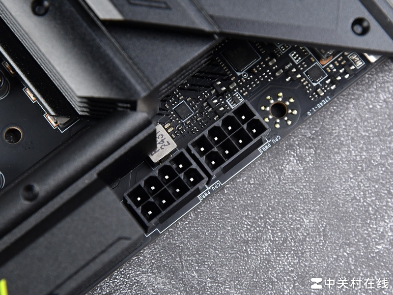 微星MAG B860M MORTAR WIFI迫击炮主板的CPU供电接口为双8Pin供电设计,并且使用强化实心针,此前微星林大也测试过,同样一款CPU使用双8Pin接口的CPU供电线温度比单8Pin时低很多,即使单8Pin同样能点亮平台,插满双8Pin也更有优势。