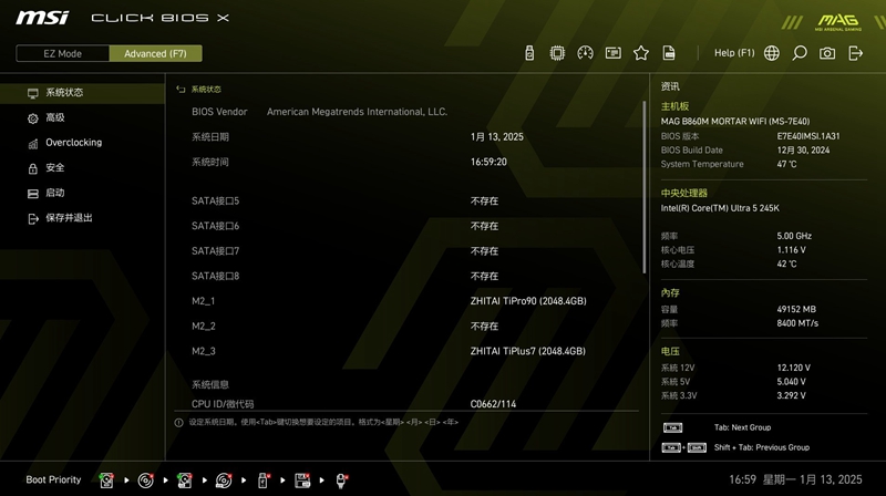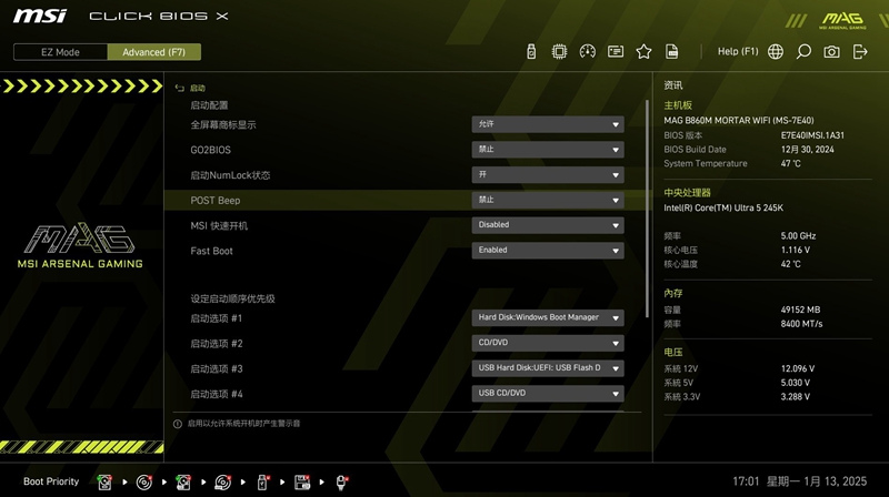 3 微星MAG B860M MORTAR WIFI迫击炮主板BIOS