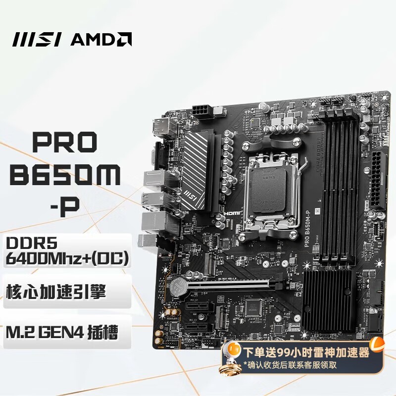 微星 B650 DDR5台式机电脑主板 支持7500F 7800X3D 9700X PRO B650M-P