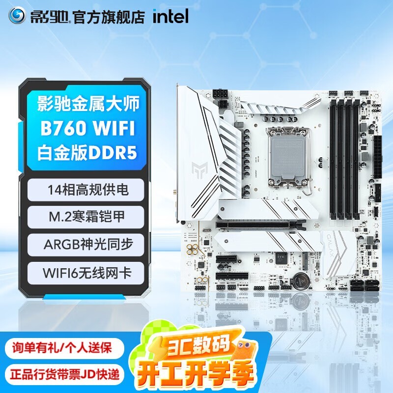 影驰 B760支持WIFI6 DDR4 酷睿I5 12600KF 13490F游戏主板 B760 金属大师D5 Wi-Fi 白金版