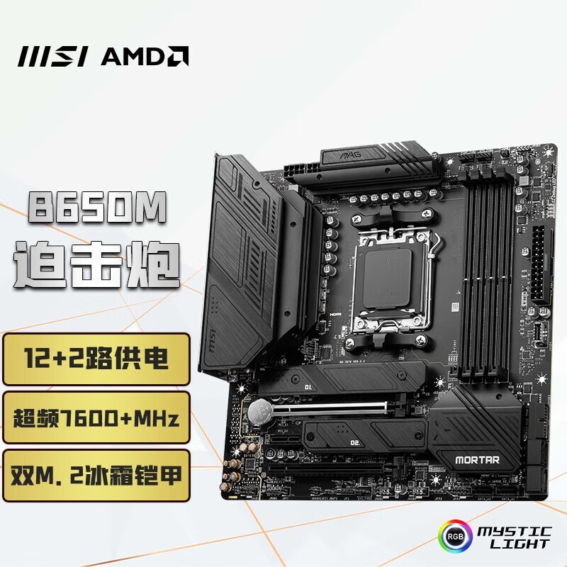 微星 B650M MORTAR DDR5迫击炮主板 支持CPU7950X/7900X/7800X3D (AMD B650/AM5接口)