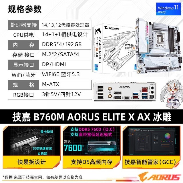 技嘉 B760M AORUS主板白色冰雕小雕电竞雕 支持英特尔CPU B760M A ELITE X AX D5【冰雕】 新12/13代主板 单品