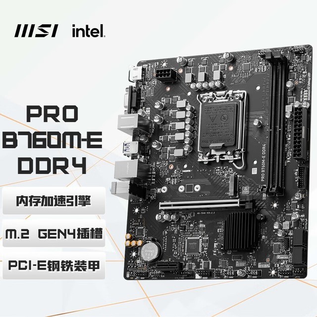 微星 B760M-E DDR4 游戏电脑主板 支持 CPU 13490F/14400F/13400F(Intel B760/LGA 1700)