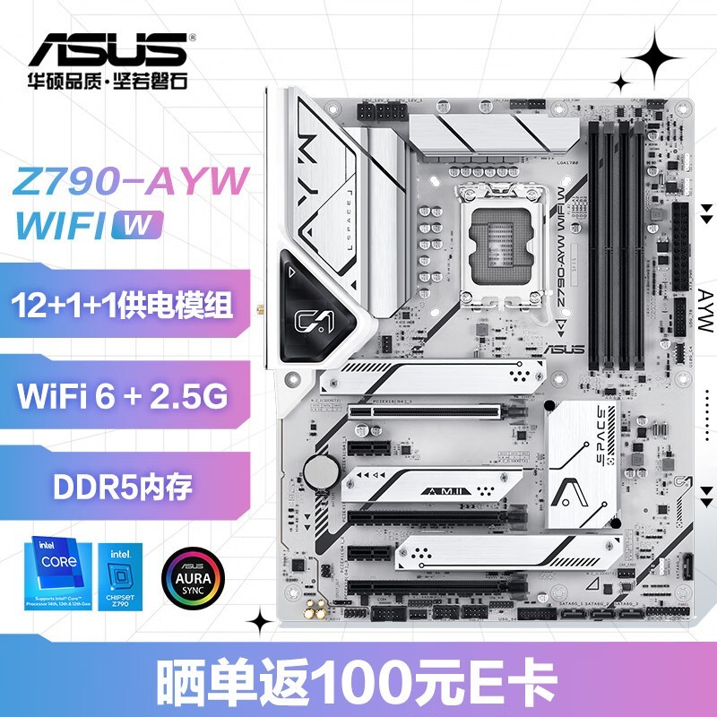 华硕 Z790-AYW WIFI W 哎呦喂 主板 支持DDR5 CPU 13900K/13700K/14700K(Intel Z790/LGA 1700)
