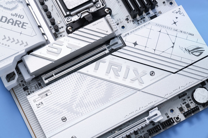 华硕ROGX870吹雪主板拥有2个PCIe 5.0 M.2和2个PCIe 4.0 M.2,一共4个M.2接口均覆盖散热片,降温同时提升性能。一系列贴心设计也再升级,进阶到显卡易拆装,无需按下按钮,只需将显卡从挡板一侧拔起,就能将显卡从插槽中取出,让升级和维护显卡比以前更加轻松。还有M.2快拆装甲,M.2滑轨卡扣和M.2便捷卡扣2.0,免工具装卸SSD,提升装机体验。