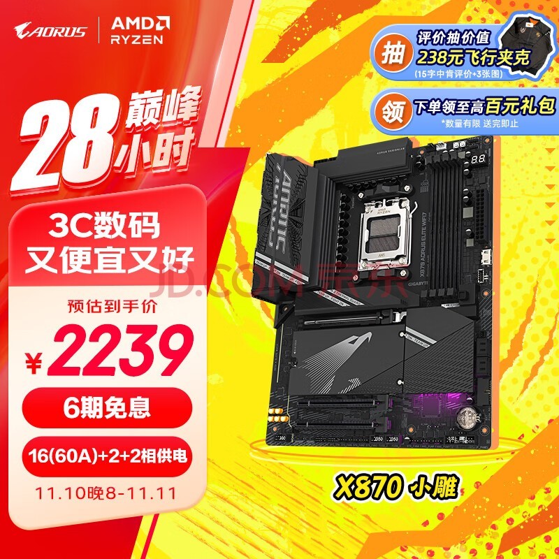 目前技嘉X870 AORUS ELITE WIFI7售价2399元,页面可领取160元优惠券,预估到手价不高于2239元,可享6期免息。