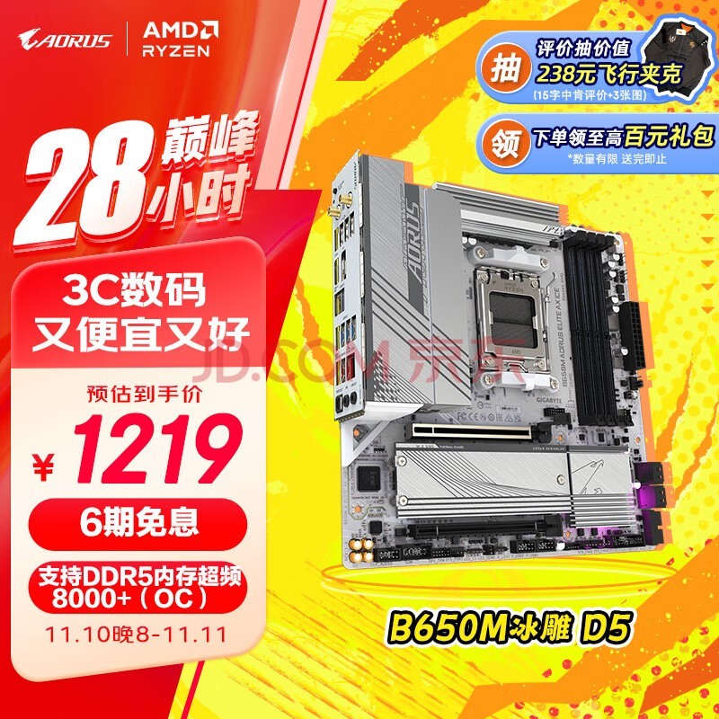 11月4日至10日晚8点,在技嘉京东自营官方旗舰店下单最高可领500元信仰大礼包,参与评价即可抽取价值238元的飞行夹克。主板系列产品至高可享6期免息,指定电源、显示器产品晒单赠100元、300元E卡。