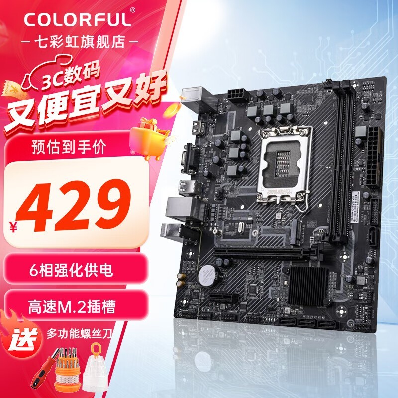 七彩虹 H610M-D EVO V21主板是一款专为喜欢DIY装机的用户设计的产品。主板采用B760芯片组,支持最新的13代酷睿处理器,性能强大稳定。七彩虹 H610M主板具备四个内存插槽,支持DDR5内存,让您的电脑更快、更稳定的运行。此外,七彩虹 H610M主板还配备了各种扩展接口和功能,如PCI-E 4.0、双SATA、HDMI等,可满足您各种需求。现在购买还可享受优惠活动,让你以更实惠的价格获得这款高性能的主板!