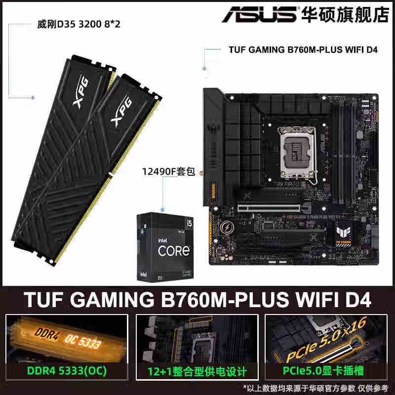 华硕 B760M-PLUS WIFI D4 重炮手主板 支持 CPU 13600KF/13490F 主板+12490F+威刚D35 3200 8*2