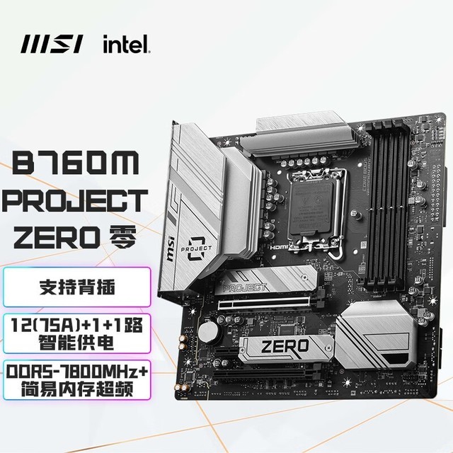微星 B760M PROJECT ZERO 零WIFI DDR5背插主板 支持CPU13600KF/14600KF/14700KF(Intel B760/LGA 1700)