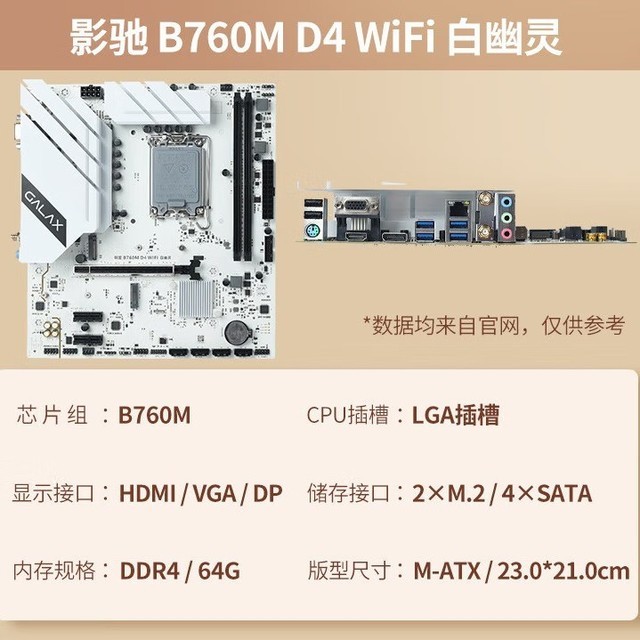 影驰 B760M D4 WiFi(B760/LGA1700)联盟幽灵 支持WIFI6 DDR4 酷睿I5 13490F游戏主板 白幽灵