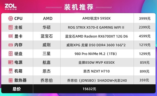 AMD 锐龙9 5950X平台(价格因降价会有价格波动所载现实情况为依据)