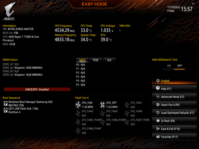 EXPO/XMP技术可以在主菜单中轻松打开,监控整机的运行情况。