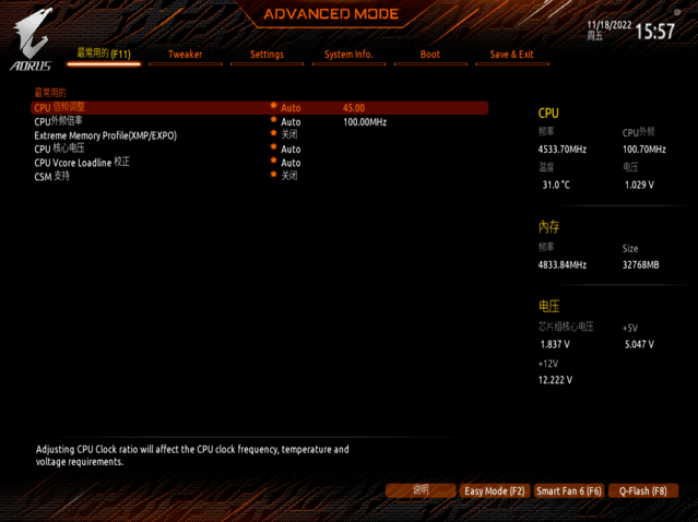 近两年来,技嘉 X670E AORUS MASTER超级雕刻主板BIOS逐渐完善。目前中文图形BIOS界面齐全,功能齐全,方便小白和高级超频爱好者使用。