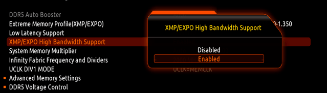 技嘉这次在BIOS中增加了内存高带宽和低延迟模式。打开XMP或EXPO就足够了。打开此选项后,一键即可提高DDR5的内存性能。这将在我们的实际测量中得到证明。