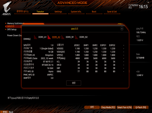 我们在技嘉 BIOS中开启了高带宽低延迟模式,提高了内存读写性能,延迟更低。这是一项非常强大的技术。建议用户使用DDR5内存。