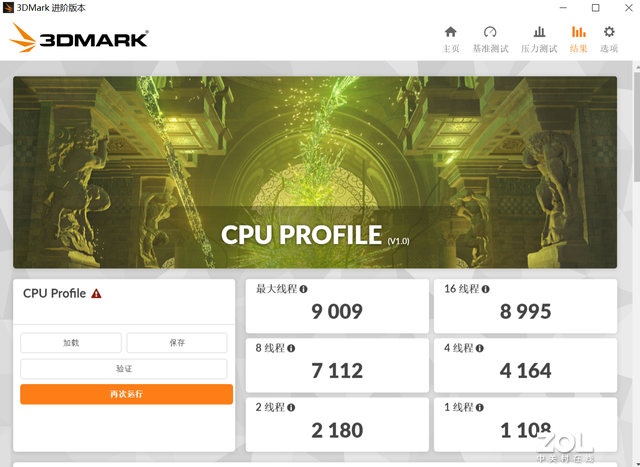 下面用CPUProfile测试CPU性能,这是3DMARK测试之一,专门测试游戏中多线程处理器的性能。