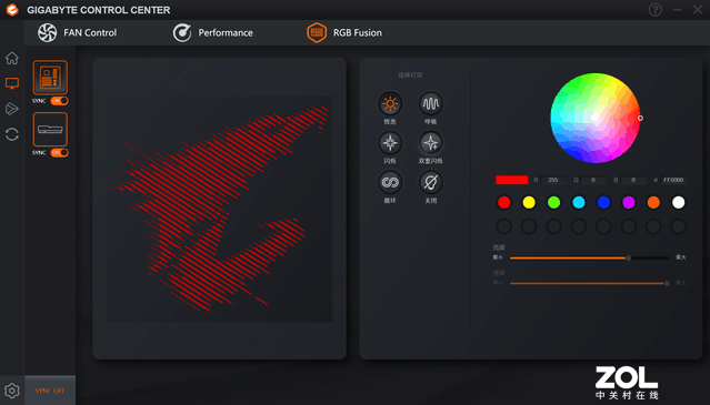 RGBFusion是技嘉的经典灯光调节工具,支持这一功能的硬件可以调节和联动灯光。