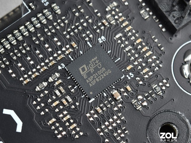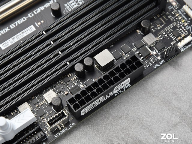 材料方面,我们先来看一下供电设计,华硕 B760-G GAMING WIFI D4主板12+1+1相供电设计,PWM控制器为ASP2100R,核心12相全部采用Dr.Mos设计,型号为SiC623,可输出60A电流,配合8+4pin供电接口,理论上这款主板可以满足13代非K酷睿i9级处理器的负载输出。