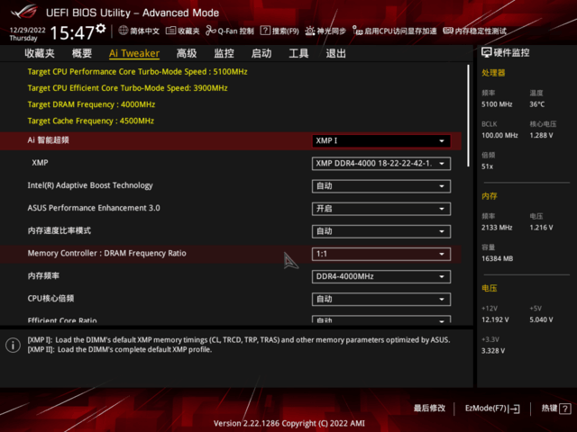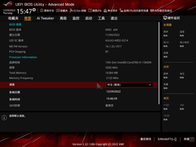 以下是这一代华硕主板的BIOS,仍然是完整的中文图形BIOS主界面,调整非常方便。