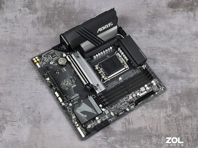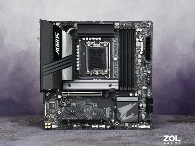 技嘉 B760 小雕 AX是一款标准的M-ATX主板,更适合中小型主机。这个主板本身没有多余的光效设计,唯一的光效就是技嘉LOGO在I/O盔甲处,符合主流中端B系列主板简约的设计风格。