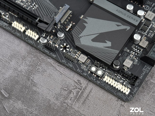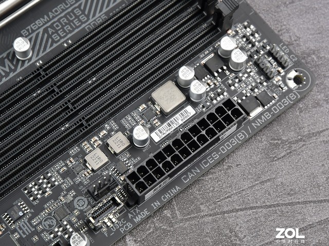 该主板的CPU电源接口为8+4pin,能承载超过500W的功耗,而且技嘉还采用实心针脚设计,更加稳定耐用。