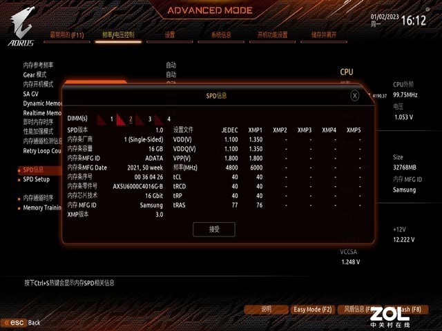 B760仍然锁定CPU倍频超频,因此技嘉 BIOS主要设计内存超频,支持DDR5自动超频,支持XMP和EXPO两种内存标准。
