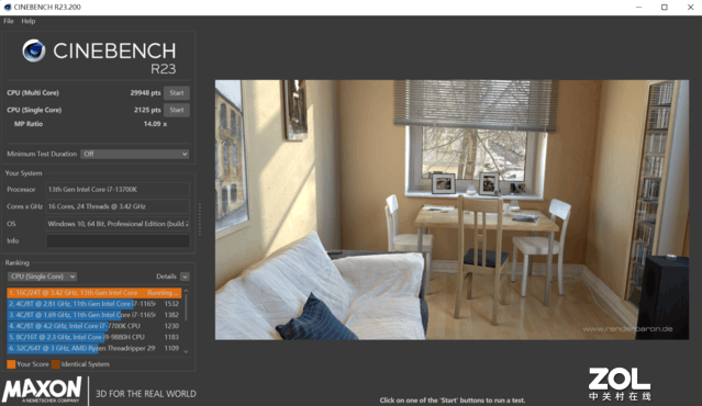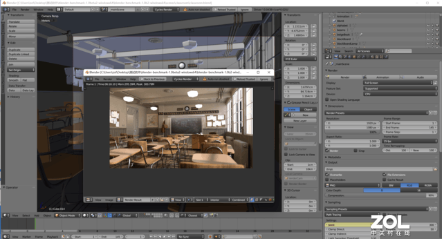在这个测试中,渲染一个教室场景只需要6分钟以上。由于13代酷睿和高频大容量DDR5,整个平台的内容创作效率极高。