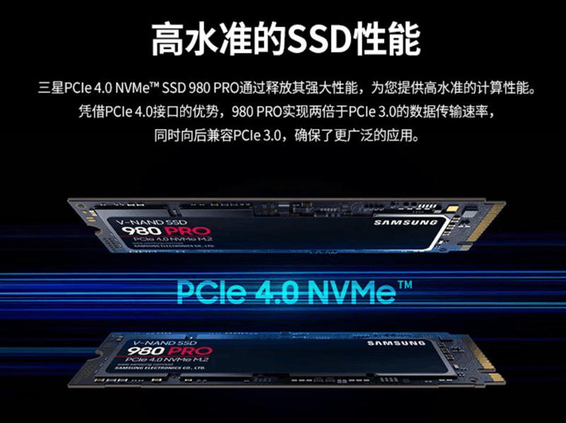 三星 980 PRO 1TB SSD固态硬盘 M.2接口(NVMe协议PCIe 4.0 x4) (MZ-V8P1T0BW)
