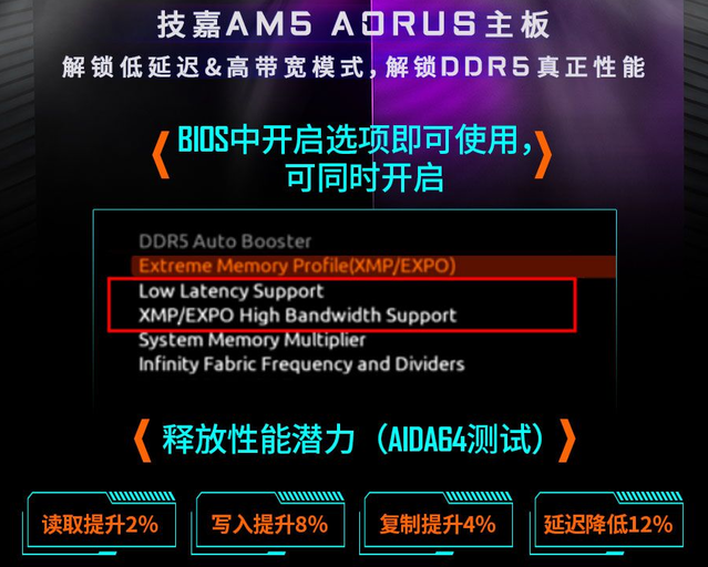 DDR5时代优化内存的妙招有很多,比如最新的BIOS中集成了特殊的低延迟和高带宽模式。只有在BIOS中打开这两个功能,才能直接提高内存的读写带宽和延迟,充分发挥真正的实力,而不是选择内存颗粒和品牌。