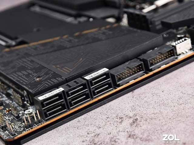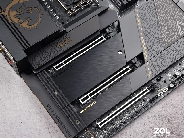 显卡槽周围有5个M.2插槽,全部用金属散热器覆盖。