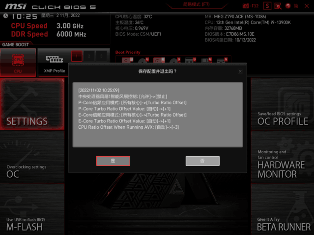 首先,测试13代平台中6000频率DDR5内存的表现,在微星 Z790 ACE战神主板中打开XMP即可一键实现。