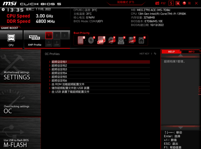 BIOS微星 Z790 ACE战神主板。