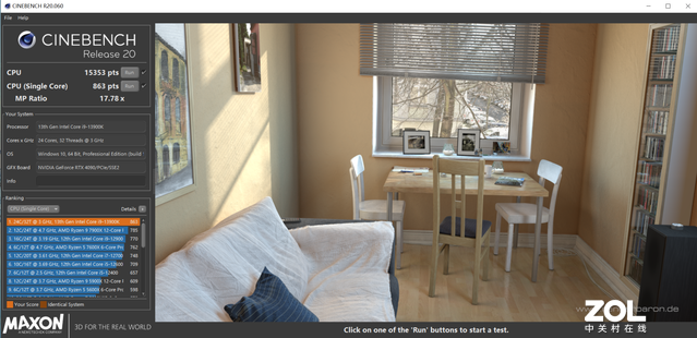 下一步,我们将对CPU进行测试,使用CINEBENCHR20软件,这是一个CPU基准测试软件。