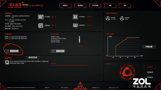 彩虹主板开启XMP