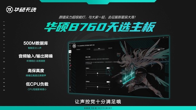 娱乐氛围充满了身临其境的音效体验。华硕 B760天选主板采用双向AI降噪技术,不仅可以降低麦克风输入的噪音,还可以降低扬声器中其他音频来源的噪音。无论是游戏、聊天、直播还是沟通,都可以说得清楚,听得清楚,让沟通更顺畅。还有DTS音效定制,可以减少失真,提供更深的低音,增强游戏耳机和扬声器的音频体验,让游戏、听歌、电影的音效更好,支持定制音频设置。