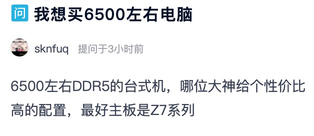 6500元,这可能是个再普通不过的装机预算了,但是一旦加上了啥附加要求,那可能就有点说不准了,例如我们在后台收到下面这位网友的提问,要支持DDR5内存,最好是Z7(90)。那这问题就来了,大品牌的Z790主板价格非常的感人,如果选了Z790在预算内可能就买不到能好好玩游戏的显卡了。