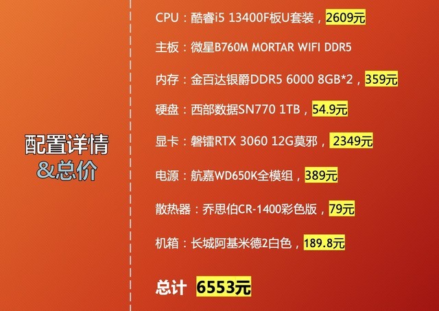 最后核算总价为6553元,算上截稿时的满减优惠,实际到手价格是不到6500元的。
