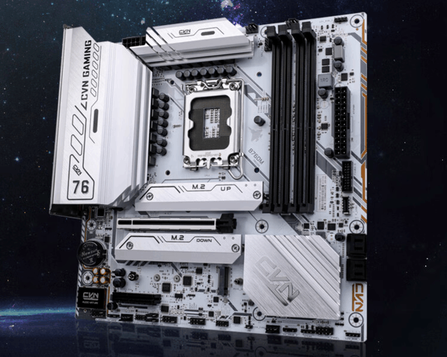 除了面向偏高端主机的Z790主板以外,七彩虹还为大家带来了多款高性价比的B760主板,比如这款CVN B760M FROZEN WIFI D5 V20。 相较于前面的主板,它采用了M-ATX板型,更加适合搭配中小型机箱, 而且采用银白色的设计,在搭配浅色的显卡和机箱的时候更加美观。