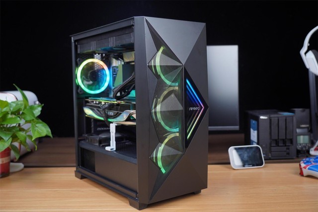 机箱是安钛克的星曜者DF800 Flux,外形设计更加的激进且有个性。其实我这款是这个型号的升级版,增加了后置ARGB风扇以及附带了一个涡轮反叶风扇。机箱前置面板三角形的凹凸设计视觉冲击力非常强,再加上一块三角形的透光优秀的钢化玻璃,当点亮后你一定会非常的喜欢。其实官方也表示。这款机箱的前面板设计灵感来源于星战,看来电影也会给设计师带来灵感。