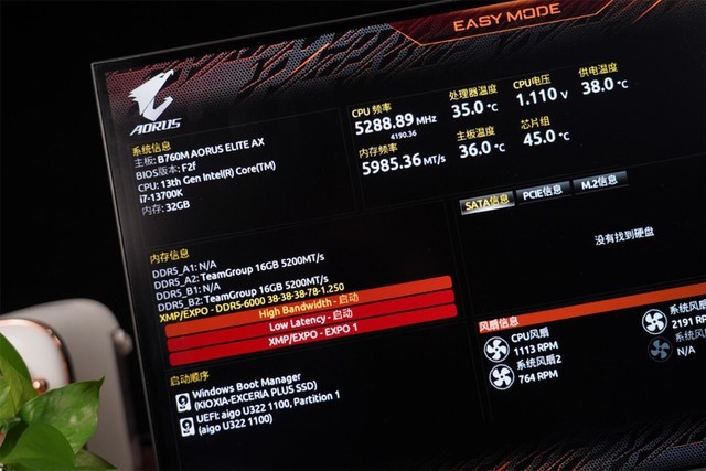 技嘉 B760M AORUS ElITE AX 小雕WIFI主板完全支持了高频内存DDR5 7600MHz(OC)。确保内存具备足够的XMP/EXPO能力,并在其主板上启动XMP/EXPO功能,并且升级到最新的bios。主板支持DDR5内存高带宽&低延迟模式,6000频率开起技嘉D5黑科技之后,提升内存得性能,内存性能增强,可以提升24%的内存性能,这也是今天我要为大家展现的内容。